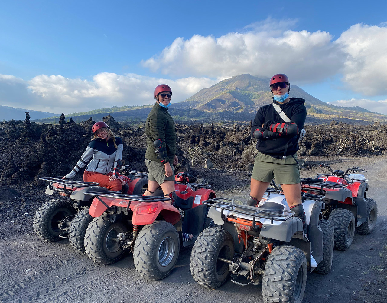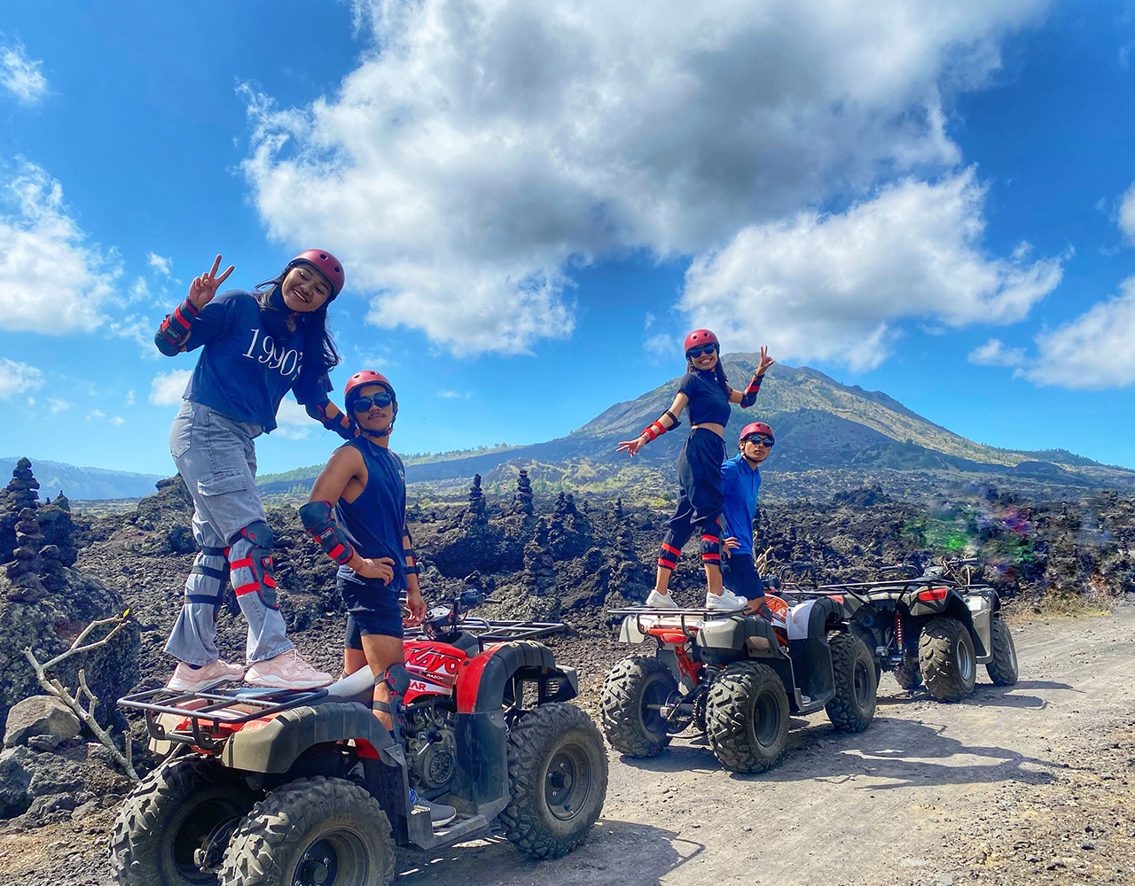 BATUR ATV RIDE Exclusive Mount Batur ATV Black Lava and Black Sand Adventure, we offer something different for you by offering outdoor activities and adventure tours to enjoy a truly exclusive Bali Adventure. Bali has many activities and one of these adventures is the perfect place to do outdoor activities such as ATV Black lava on the Batur volcano, and also be welcomed by a local guide for an informative safety briefing and equipped with protective equipment. Your semi-automatic quadbike is easy to use even for less experienced drivers. About an hour more quad bike adventuring, you will find out the true meaning of a truly different and amazing experience in Bali, especially Mount Batur Black Lava ATV and Black Sands Adventure. We offer atv adventure activities on the mountain batur with the longest and best tracks in kintamani Duration of the ride atv : 1.5 hours This adventure combines fun and visiting tours on Mount batur using atv The track to be passed is 1. Black Lava 2. Black Sand A brief description of the route to be followed 1. This journey will also pass through black lava which has frozen into black rock or what is called black lava 2. This trip will explore the sea of black sand created by the eruption of Mount Batur You will also see firsthand the natural beauty of Mount Batur by using an ATV make your holiday a fun one by taking part in the ATV Quad Bike on Mount Batur