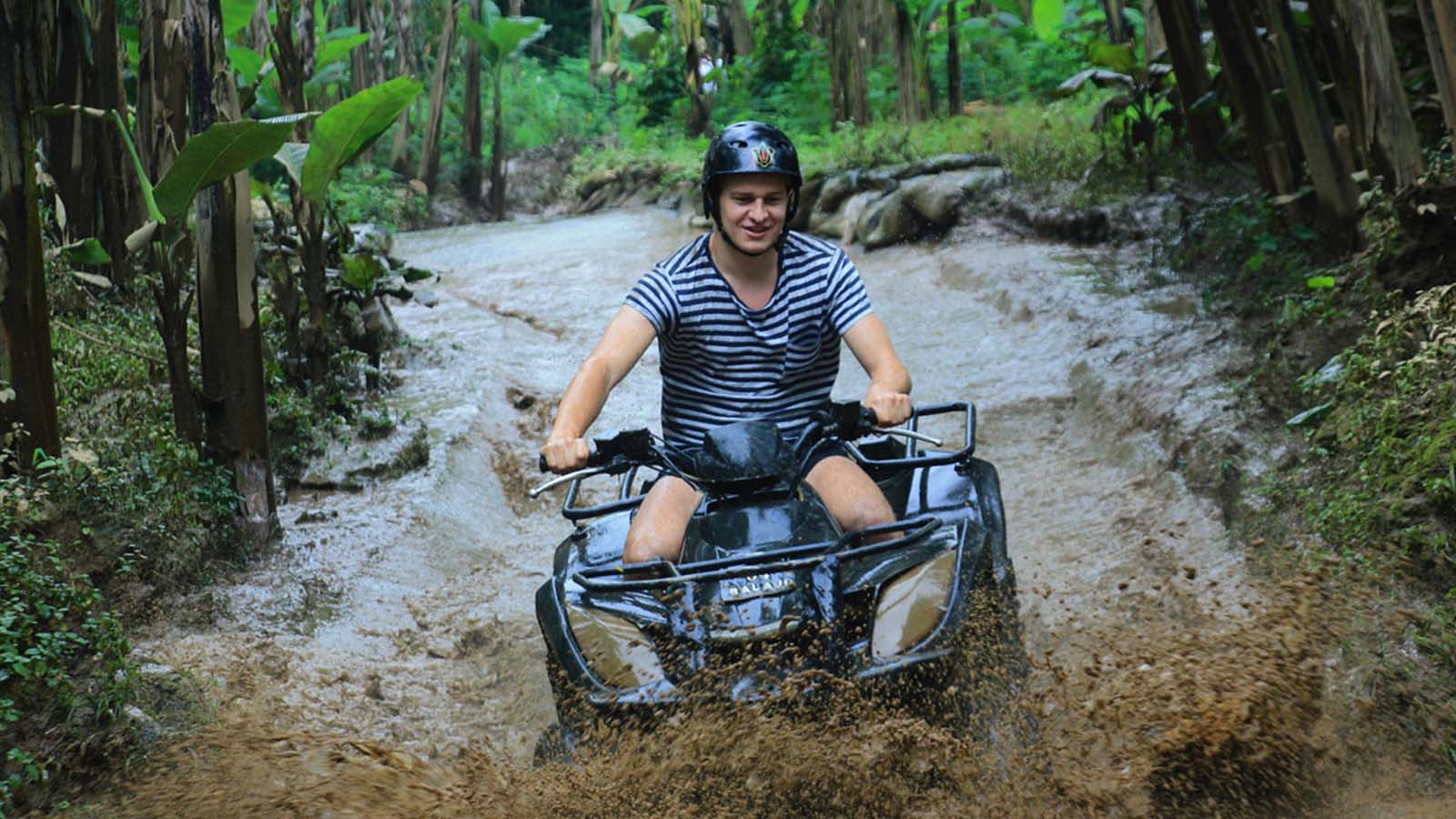 • Explore challenging trails on an ATV through rice paddies, rivers, and forests.